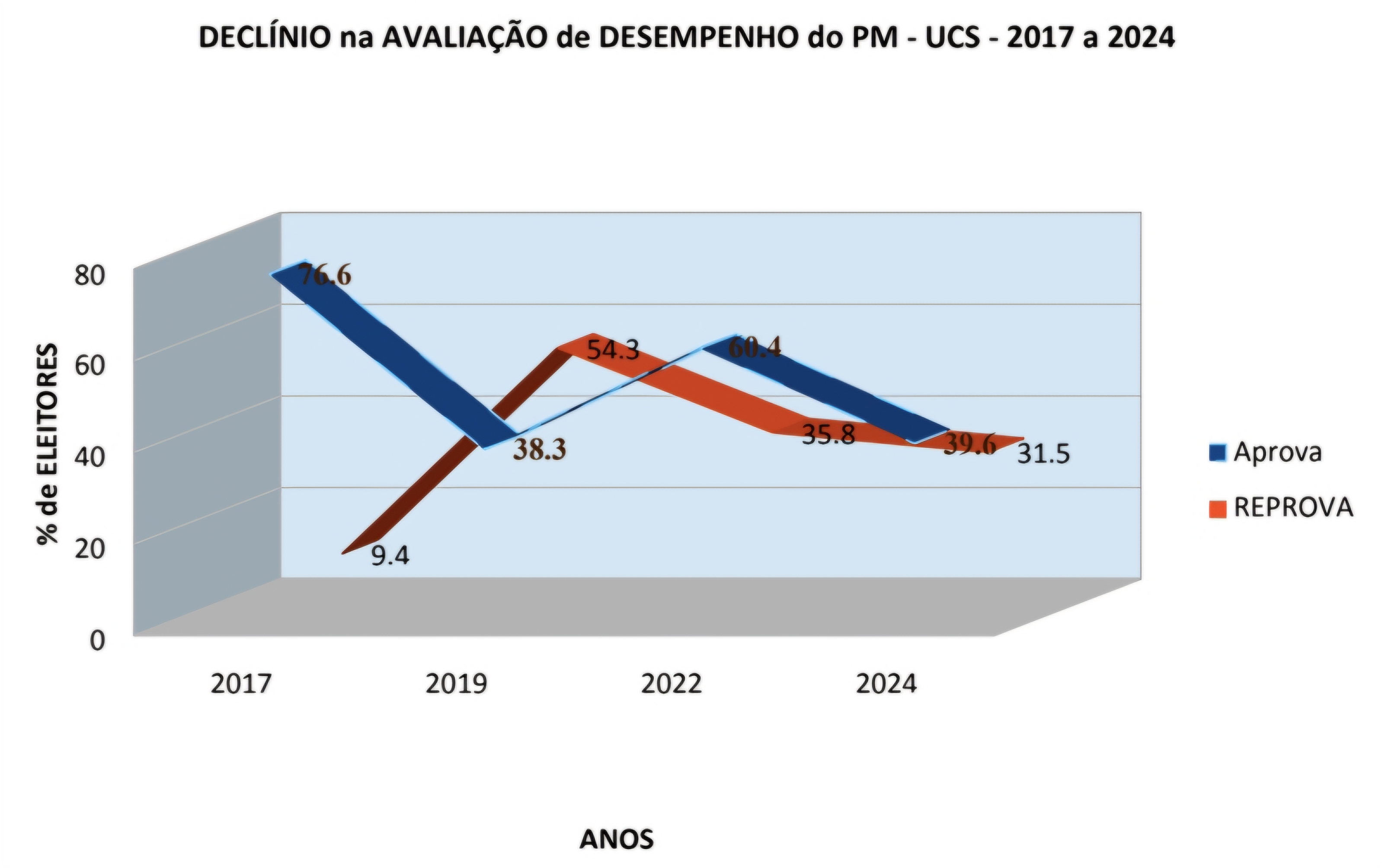 5. A situação mais preocupante é a queda acentuada na aprovação de UCS nesse mesmo período de dois anos: caindo de 60,4% de eleitores que aprovavam o seu desempenho para uma aprovação negativa de apenas 39,6% de eleitores!!!