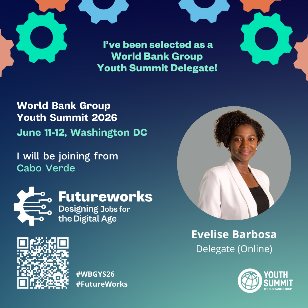 Cabo Verde participa pela primeira vez na cimeira da juventude do Grupo Banco Mundial que decorre nos dias 11 e 12 de junho 2026 em Washington sob o lema “FutureWorks: Designing Jobs for the Digital Age” (O futuro do emprego: projetando empregos para a era digital). A psicóloga e investigadora cabo-verdiana, Evelise Barbosa, é quem representa o nosso país.
