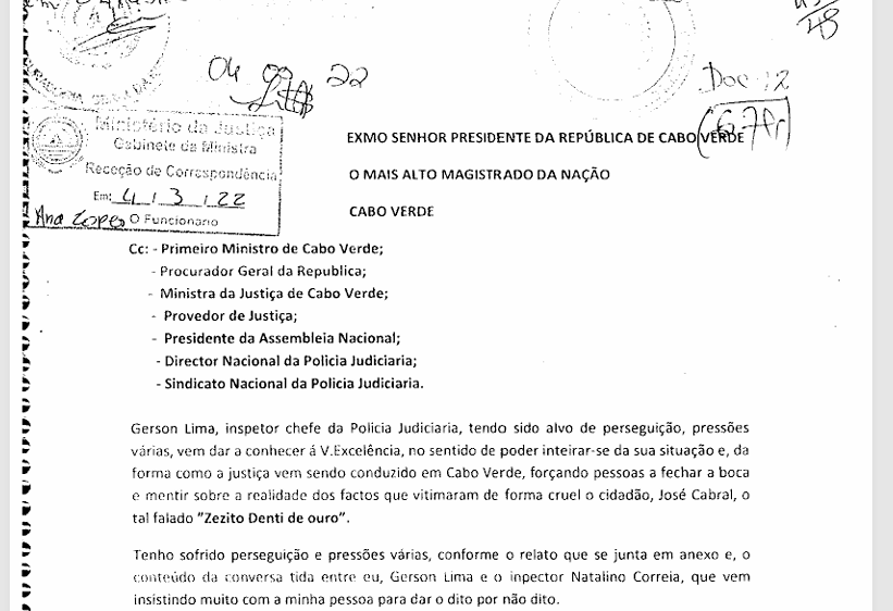 No dia 4 de Março, um dia depois de pedir a anexação da sua conversa com Natalino Correia aos autos, Gerson Lima fez chegar ao presidente da República, presidente da Assembleia Nacional, Primeiro-ministro, Ministra da Justiça e Provedor de Justiça documentos a partir dos quais revelava o seguinte: “outro motivo é que o referido inspector (ele, Gerson Lima) constitui uma testemunha fiel, honesta e verdadeira sobre as circunstâncias do linchamento de Zezito Denti d’Oru, numa operação superiormente planeada, dirigida e comandada pelo então director nacional adjunto da PJ, sr. Paulo Rocha, actual ministro da Administração Interna”.
