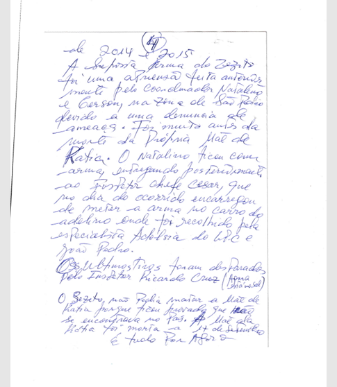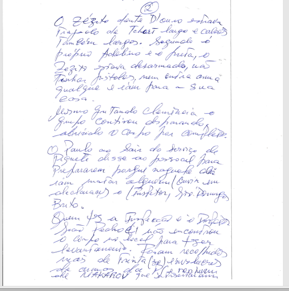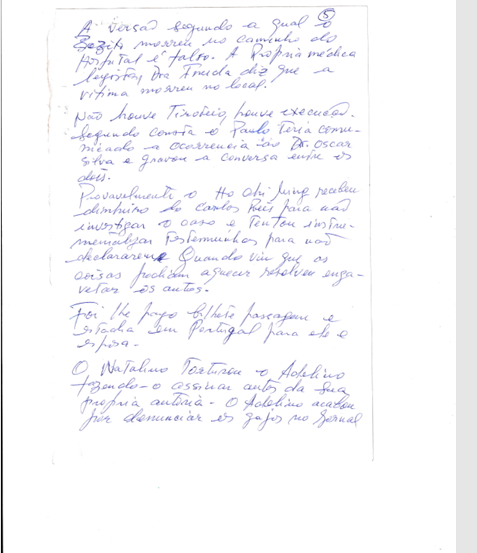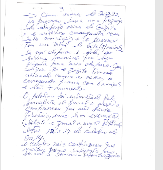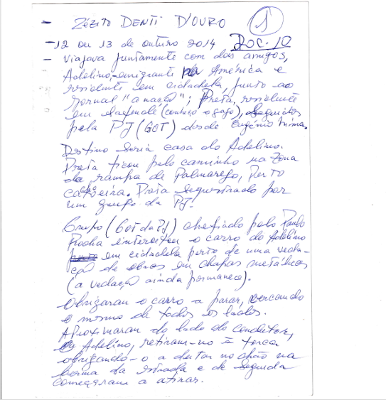 Manuscrito da denúncia de Gerson Lima, excluído da investigação pela PGR