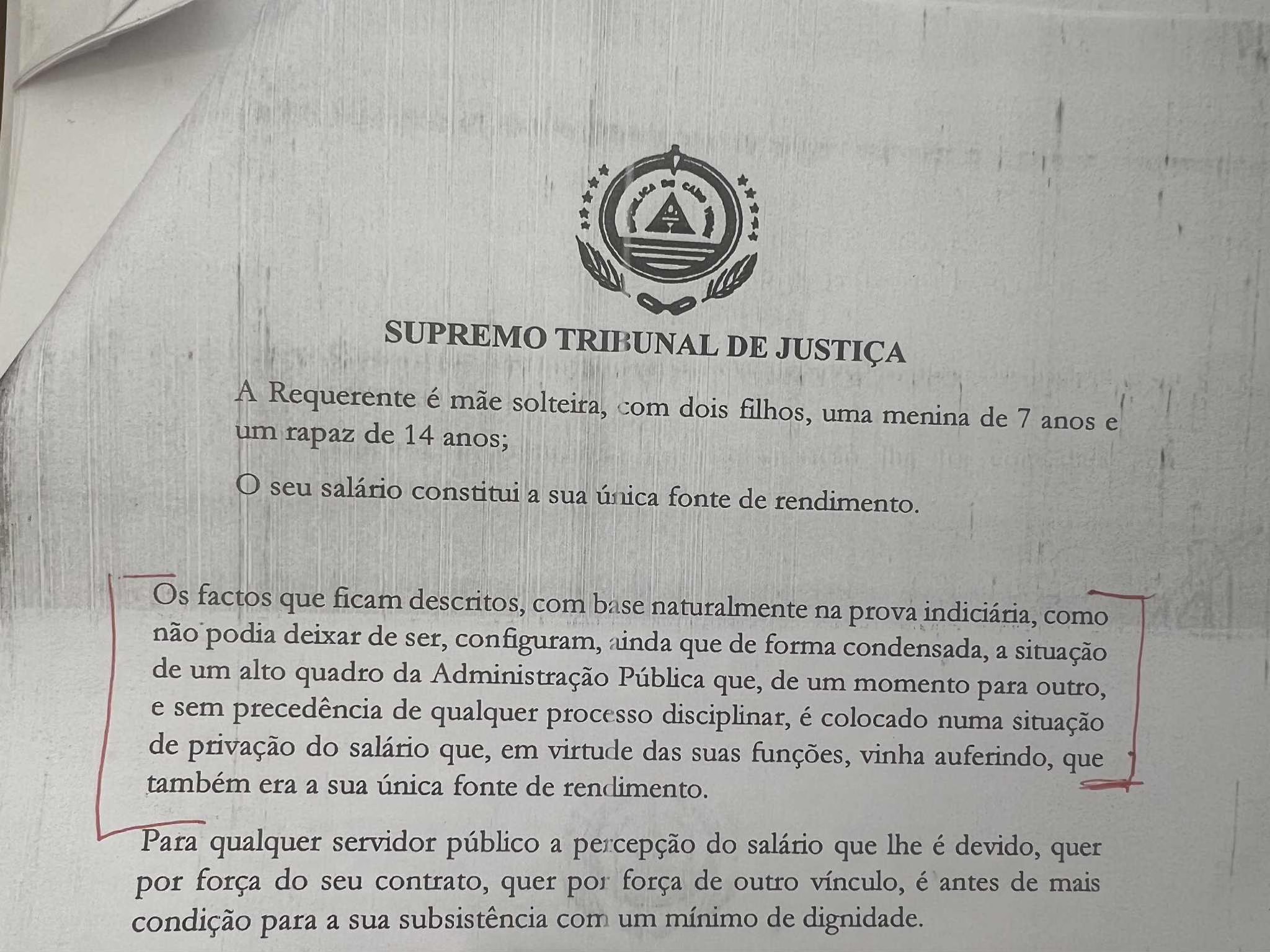 Continuando a sua argumentação, Andyra Lima é perentória: O despacho “foi adulterado e publicado em BO”. A advogada avança, ainda: “Vejam, a fundamentação para o despedimento, mudou da água para o vinho, e vem se juntar milagrosamente a Lei nº 31/III/87, no seu número 3, na redação que lhe foi dada pelo Decreto Legislativo nº 8/97 de 8 de maio, ou seja, o Estatuto Disciplinar dos Agentes da Administração Pública, e o artigo escolhido ao bel prazer de uma leviana decisão, foi a de que eu tinha sido despedida por justa causa no decorrer de um processo disciplinar, por violação de segredos de trabalho”.